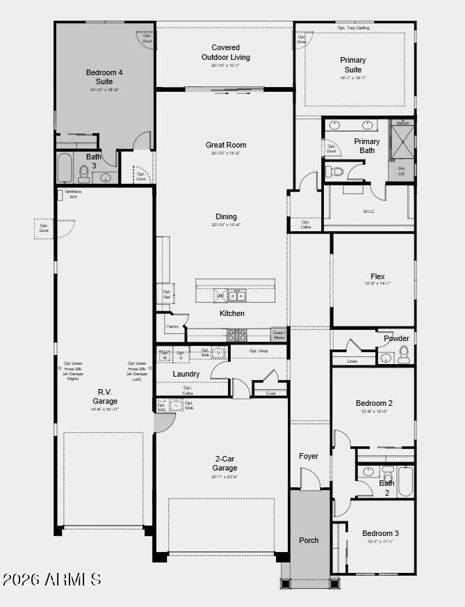 Listing details for 5422 Coplen Farms Rd, Laveen, AZ 85339 : What's Special: RV Garage | South Facing Lot | Flex Room | 3 Full Baths. New Construction - August Completion! Built by America's Most Trusted Home Builder. Welcome to the Overland at 5422 W Coplen Farms Road in Salero at Laveen Vistas Journey Collection! This spacious and inviting home opens with a welcoming foyer that leads to two secondary bedrooms, a full bathroom, a flex room, and a convenient powder room. The open living area connects the great room, casual dining space, and kitchen with a central island, flowing seamlessly to a covered patio that is ideal for gathering and everyday enjoyment. A private primary suite sits quietly off the great room and features a generous walk-in closet and a beautifully designed bath. An additional bedroom and bathroom offer comfort for guests, while a two-car garage and an oversized RV garage provide exceptional storage and flexibility. Salero Journey offers a warm, welcoming neighborhood atmosphere just minutes from South Mountain Park, giving you effortless access to the desert's natural beauty. Its prime location near the Loop 202 South Mountain Freeway also provides quick, convenient connections to major destinations throughout the Valley. Additional Highlights Include: multi-slide door at great room, gourmet kitchen, walk-in shower at primary bath, bedroom 4 in place of flex 2, and enclosed garage, double gate in place of standard, RV garage prewire for future HVAC mini split, black painted cabs, 42" uppers at kitchen, gourmet gas kitchen, pebble white quartz countertops at kitchen, upgraded tile and carpet, ceiling fan pre-wire at covered patio, EV prewire at 2-car, engineered marble counters at bathrooms, cabinet hardware, pots and pan drawer, recycle center at kitchen, raised vanity at bath 2 & 3, pre-plumbed for water softener, and gas line for future outdoor kitchen. MLS#7016889