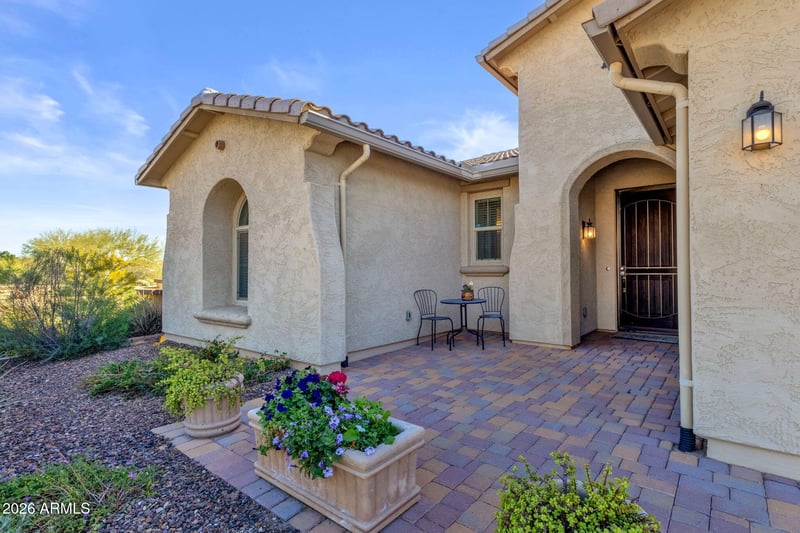 Listing details for 5425 Taro Ln, Glendale, AZ 85308 : This 2017 beautifully designed home is walking distance to Midwestern University, Foothills Aquatic Center and backs to Glendale-City maintained creek. You'll enjoy mountain views both front/back. Inside, beautiful tile flooring, recessed lighting, and spacious bedrooms create a clean, inviting feel. The chef's kitchen shines with granite countertops, stainless steel appliances, upgraded cabinetry, and a large island perfect for gathering. The primary suite offers dual sinks, a custom walk-in shower, and an oversized walk-in closet. Step outside to a serene backyard oasis featuring mature shade trees, synthetic turf, a paver walkway, and a generous covered patio ideal for relaxing or entertaining. Close to schools, parks, shopping, dining, and freeway.