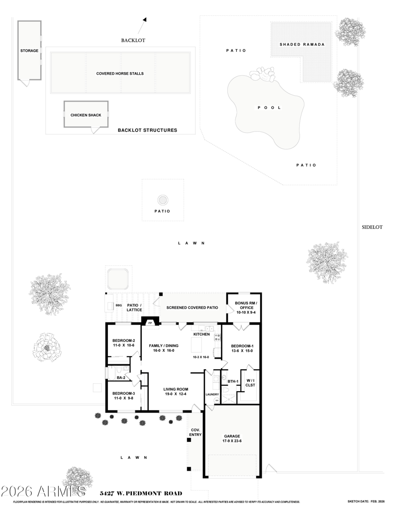 Listing details for 5427 Piedmont Rd, Laveen, AZ 85339 : Welcome to country living on an acre-plus irrigated horse property! Enjoy open space, and mountain views, while being close to the city and other parts of the valley! Farm style home featuring brick detail inside and out. Kitchen, remodeled in 2020, features Hickory Cabinets, Granite Counters, and SS Appliances. Screened in Back Patio extends living area. Additional outdoor spaces include Arbor covered Patio area with Built-in Grill and Spa; Open Paver Patio with Firepit; and Large fenced Pool with extensive paver Patio and vine covered Ramada and Patio area. The large lot features two areas accessible and suitable for RV or other parking, Corral area, 4 Horse Stalls (with water), and large shed. Bonus/Exercise Room/Office (not incl in sf) is comfortable with portable AC and features dog door to fenced dog run on the side of the home. Great open floor plan and lot provides lots of flexibility to customize. Minutes from loop 202 Freeway, shopping, and dining. Enjoy the solitude and comfort of rural life with city conveniences close by. Come see this wonderful home!