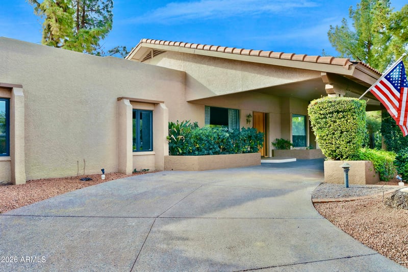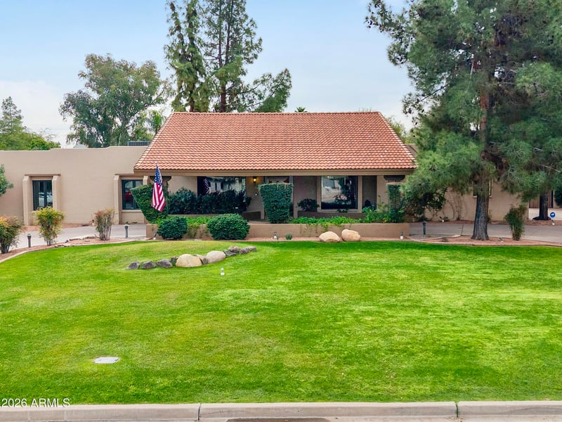 Listing details for 5429 Sahuaro Dr, Scottsdale, AZ 85254 : Nestled in Orange Tree Estate, a premier large-lot custom home community with no HOA. This family-friendly 5-bedroom, 3-bath home offers a spacious split floor plan and meticulous mature landscaping. Interior features include real hardwood floors and a cozy honeycomb fireplace. The eat-in kitchen showcases custom oak cabinets, granite countertops, and abundant storage. A full wet bar with wine fridge makes entertaining easy. Recent upgrades include a new HVAC, freshly painted baseboards and doors. The backyard is built for entertaining with a covered patio, Olympic-size pool, built-in BBQ, and fruitful citrus trees.