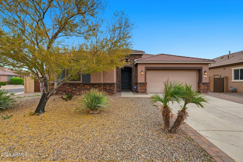 Listing details for 543 158th Ln, Goodyear, AZ 85338 : Welcome home to Travis Park in Goodyear—where space, style, and convenience collide! Ideally located just off the I-10, this 2017-built stunner offers 2,400+ sq ft, 4 bedrooms, and 2.5 baths with a bright, open floor plan designed for entertaining. The kitchen shines with an oversized island, massive walk-in pantry, and seamless flow to the living area with built-in surround sound. Enjoy a split floor plan featuring a spacious primary retreat with ensuite and huge walk-in closet—tucked privately away from guest rooms. Set on a corner lot with a 3-car tandem garage, RV gate, and free-and-clear solar, this home delivers big benefits in a quiet, smaller community with easy access to shopping and dining. Energy, efficiency, and lifestyle—this one has it all!