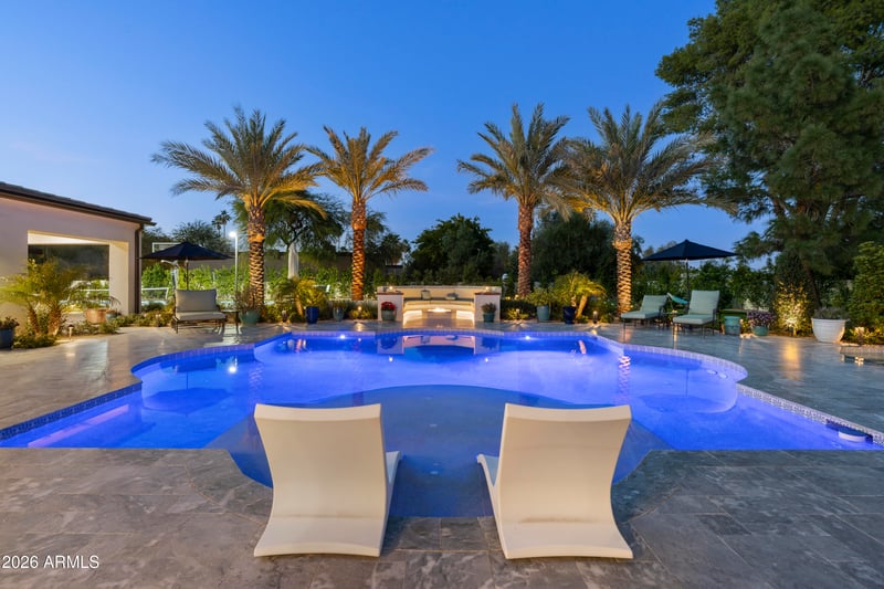 Over $200,000 in upgraded landscaping includes mature trees, expansive turf area, striking desert plantings, a beautiful saguaro, and productive lemon trees, creating a private and inviting outdoor oasis.
