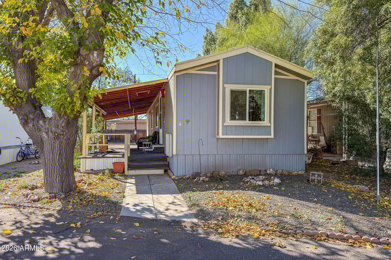 Listing details for 550 Palm Dr #4, Wickenburg, AZ 85390 : Lock-and-leave furnished living at its best in beautiful Wickenburg, AZ! This charming 2-bedroom, 1-bath manufactured home is located in a welcoming 55+ community, perfect for full-time living or a relaxing getaway retreat. Enjoy your morning coffee or evening sunsets on the inviting deck, and take advantage of the personal storage shed for all your extras. The community center offers great opportunities for socializing, gatherings, and activities, making it easy to stay active and connected. Conveniently located near shopping, dining, and local attractions, you'll have endless places to explore and enjoy. Affordable, low-maintenance living in a friendly desert setting — don't miss this opportunity!
