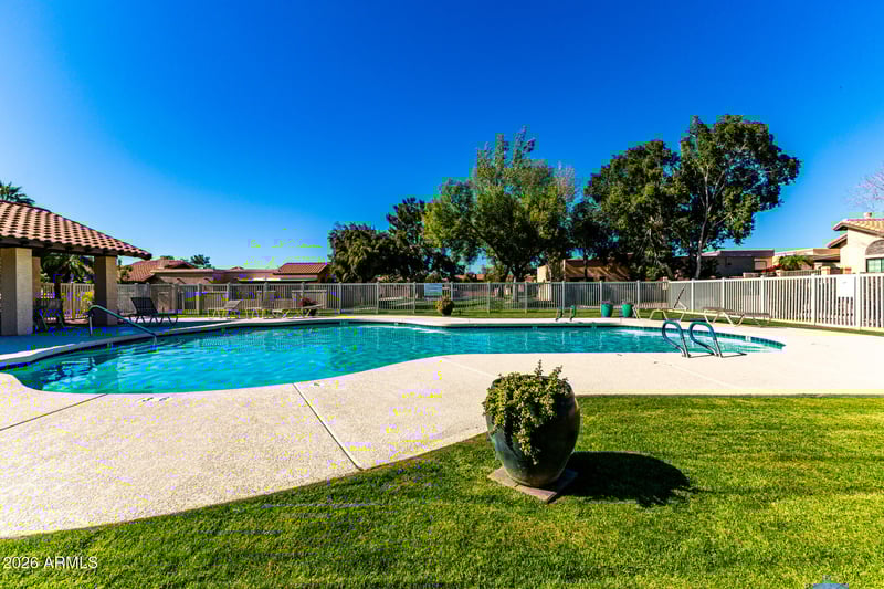 Listing details for 5505 Mclellan Rd #74, Mesa, AZ 85205 : Alta Mesa townhome communtity is well sought after with all single level homes and 2 car garages. This unit is in the best location, an end unit with a South facing backyard that sides to a greenbelt. One of the only communities around with large mature trees and tons of grass! And the best part is the HOA does all the work . The pool is just out the back gate offering easy access. Open floor plan with 2 bedrooms and a office or bonus room. Beautiful planters in the back ready to personalize. This is a Snowbirds dream home. Lock and leave. Come put your personal stamp on this adorable unit! Bring your buyers you won't be disappointed!!
