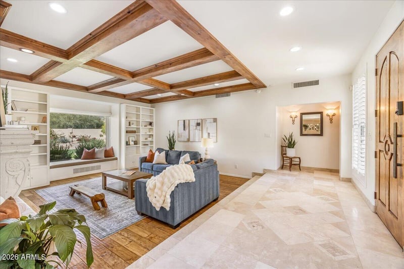 Listing details for 5512 67th Pl, Paradise Valley, AZ 85253 : An entertainer's dream, this move-in ready estate showcases rare, UNOBSTRUCTED VIEWS of Camelback Mountain from one of the most coveted lots in the area. Set on 1.031 acres with an impressive 130+ foot automatic setback, the property offers exceptional privacy, expansive outdoor living space, and luxury upgrades (roof 12/25, new irrigation 2025, new HVAC 1 unit 2025, water heater 2025, and more). The updated home has seamlessly blended timeless architectural character with sophisticated modern enhancements. Provenza Artico hardwood flooring throughout provides a warm yet refined foundation for the home's elegant interiors. Just minutes from Loop 101, scenic desert trails, ScottFashion Square, premier shopping, fine dining, Downtown Scottsdale, and top-rated schools. Step through a custom artistic metal door into expansive living spaces designed for both grand entertaining and intimate family moments. Electric blackout shades and a full 7-speaker surround sound system enhance the modern lifestyle, while a dramatic dual wood-burning stone fireplace elegantly divides the family and living rooms. The formal dining room, highlighted by a light-filled rotunda, comfortably accommodates large gatherings, making entertaining effortless and sophisticated.