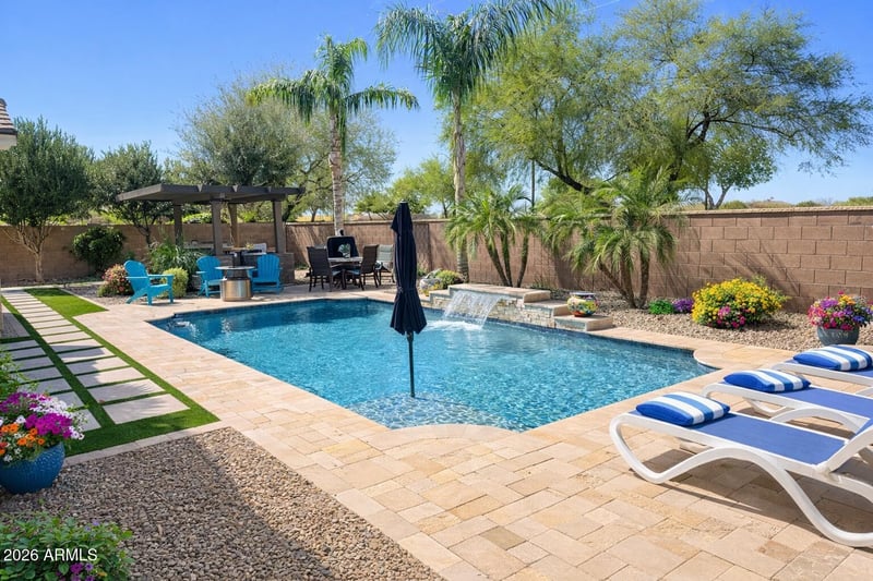 Step outside to an exceptional entertainer's backyard designed for unforgettable gatherings. Highlights include a large covered patio, a separate ramada with built-in BBQ (electric already run and a gas stub available), refrigerator, countertop seating, plus low-maintenance turf and pavers placed perfectly throughout. The pristine saltwater pool with a tranquil water feature completes this resort-style retreat.