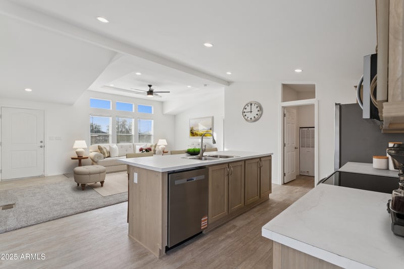 Listing details for 55338 Coral Canyon Rd, Maricopa, AZ 85139 : Own your land. Own your view. Very private. This brand-new 4-bed, 2-bath home sits on nearly 2 acres with direct mountain views -- just off paved roads and NO HOA. Inside: 1,600 sq ft of open living with vaulted ceilings, large kitchen island with stainless appliances, a separate dining room with sliding glass door to the back patio and a master suite with walk-in closet and dual vanity. Washer and dryer included. 4th Bedroom also has double doors to great room and can be used as a den/office. Outside: concrete front and back patios, mountain views, new shared well and new septic. Additional homes available in the area.