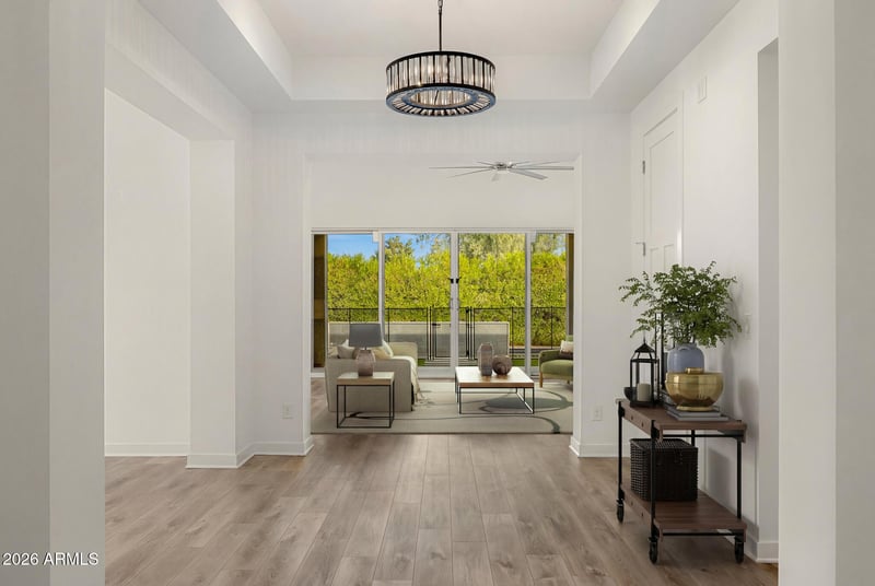 Listing details for 5534 Alan Ln, Paradise Valley, AZ 85253 : The ultimate lock-and-leave retreat in Paradise Valley, this beautifully designed residence is tucked within a quiet, private community and framed by mature ficus trees that create a serene, resort-like backdrop. Thoughtfully designed for effortless living, the home offers complete privacy, refined modern finishes, and an abundance of natural light throughout. Soaring ceilings and expansive windows elevate the interiors, while the elegant dining room flows seamlessly into a spacious open-concept family room that connects to the kitchen and sunny breakfast nook—ideal for both everyday living and entertaining. The chef's kitchen features high-end appliances, custom cabinetry, and a generous eat-in island designed for gathering. The primary suite is a true sanctuary, overlooking the pool and offering a stunning designer bathroom along with an exceptionally large walk-in closet with custom built-ins. The two additional bedrooms, bonus space, and 3.5 bathrooms provide flexibility for guests, family, or a home office. Outside, the private backyard is an entertainer's dream, complete with a sparkling pool accented by cascading water features, a large covered patio, fire pit, and ample space for outdoor dining and relaxation. Effortless, elegant, and impeccably locatedthis Paradise Valley home delivers luxury living with lock-and-leave ease.