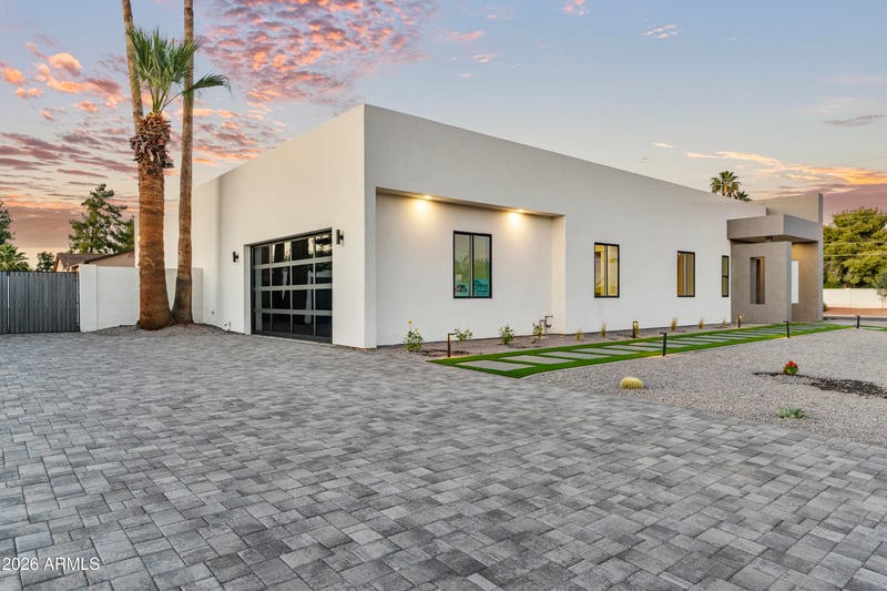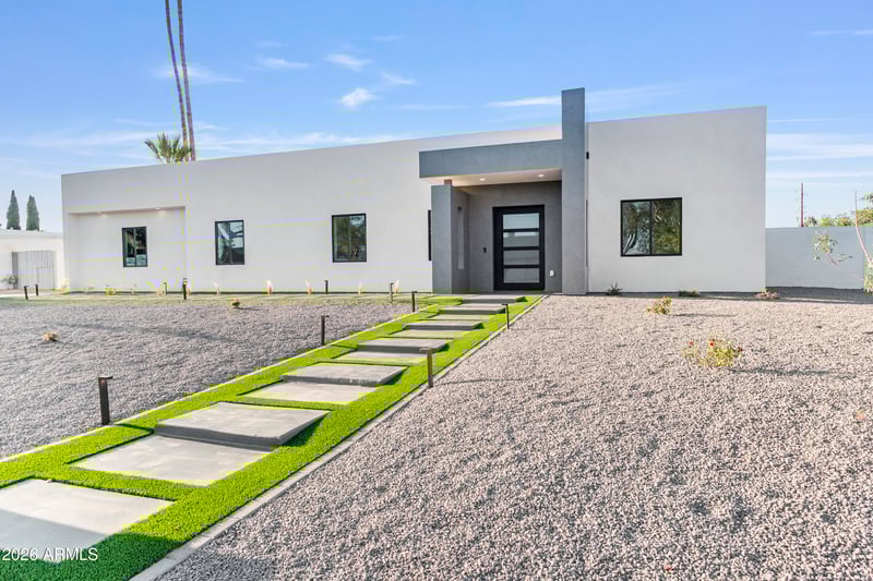 Listing details for 5540 Dahlia Dr, Scottsdale, AZ 85254 : Architectural Masterpiece: Total Rebuild Welcome to a fully reimagined 6-bedroom luxury home, meticulously rebuilt from the concrete slab up with unparalleled attention to detail. This turnkey residence features cutting-edge design, including a heavy front-pivot door with ''smart-glass'' technology (clear/opaque at a push of a button) and a stunning glass garage door. The heart of the home is a dramatic, 10-foot ceiling throughout. The kitchen is equipped with premium appliances and expansive accordion glass walls that open seamlessly for indoor-outdoor entertaining. The primary suite offers total privacy away from the guest wings, boasting direct access to an indulgent outdoor oasis. Enjoy a travertine-paved patio, a newly renovated diving pool.