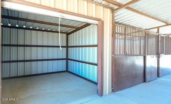 Amazing horse set up! 2 pasture areas, round pen, 4 stalls with additional turnouts, secure tack storage with movable door, covered hay storage, and