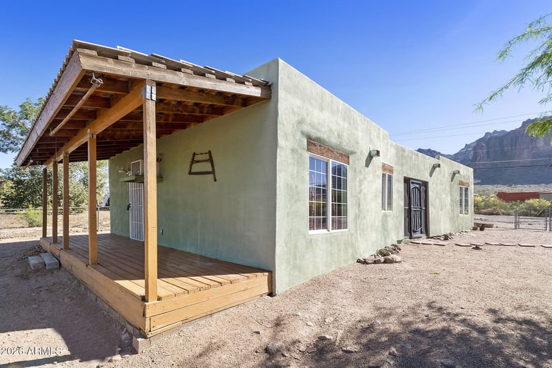 Listing details for 5578 Jacob Waltz St, Apache Junction, AZ 85119 : Location Location Location!!Tucked near the base of the Superstition Mountains, this vintage desert retreat is full of character, charm, and endless inspiration. Set on a spacious .70-acre lot, this eclectic 2 bedroom, 1 bath property offers a peaceful setting surrounded by stunning desert landscape and breathtaking mountain views. With its artistic vibe, unique personality, and room to create, this is the perfect opportunity for those seeking a one-of-a-kind home, weekend getaway, or desert hideaway. A rare chance to own a special property in an unforgettable location near the Superstitions.