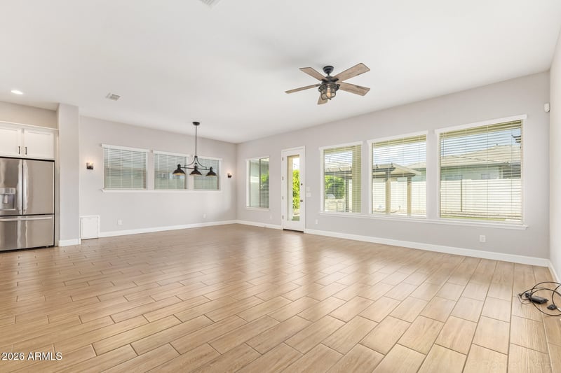 Listing details for 5607 Parrish --, Mesa, AZ 85212 : Beautiful 4 bed, 3.5 bath home built in 2019 in the highly desirable Cadence community! This thoughtfully designed floorplan features a downstairs primary suite, front parlor/flex room, spacious loft, two dedicated office areas, and a 3-car garage, all ideally situated directly across from a large park. Upgrades include 10' ceilings, custom two-tone paint, and wood-look ceramic tile in all the right places. The chef's kitchen showcases white shaker cabinetry with a contrasting island, quartz countertops, stainless steel appliances, and a gas range. The primary suite offers dual vanities, an oversized walk-in shower with dual heads, pebble flooring, and a large walk-in closet. Upstairs loft includes a built-in sink, fridge, and RO system. Step outside to a private resort-style backyard with a play pool, Baja shelf, travertine pavers, ramada, synthetic grass, and mature landscaping. No two-story homes behind for added privacy. Located in Mesa Public Schools including Silver Valley Elementary, Queen Creek Junior High, and Eastmark High. Cadence offers resort-style amenities including a clubhouse, pools, fitness center, sport courts, playgrounds, and walking trails. Conveniently located near the Loop 202 freeway, Phoenix-Mesa Gateway Airport, top dining, shopping, and entertainment options.