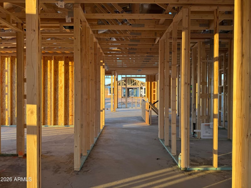 Listing details for 5608 Buist Ave, Laveen, AZ 85339 : Discover the Marigold Plan, a charming single-story home offering 1,779 sq. ft. of well-designed living space. This inviting residence features three spacious bedrooms, a versatile den ideal for a home office or library, and two stylish bathrooms. A two-car garage provides ample storage and convenience. The farmhouse front elevation, paver driveway, along with an inviting front porch, create a welcoming entrance to this beautiful home. Inside, the kitchen features pro storm gray quartz countertops, complemented by a 3x10 boho cinder backsplash, along with 3 pendant light pre-wires to add that extra touch of style and elegance, highlighting the kitchen island. Stainless steel appliances, including a side-by-side refrigerator, and 42'' gray shaker-style cabinets provide both function and beauty. The single basin sink and matte black hardware add a hint of modern design.