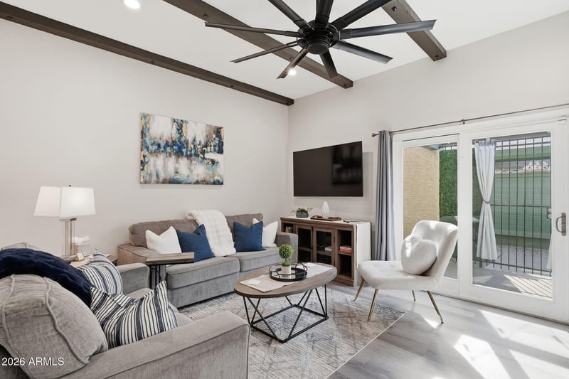 Listing details for 562 Allred Dr, Tempe, AZ 85288 : Fully renovated and impeccably reimagined, this University Shadows residence blends modern sophistication with everyday comfort, all elevated by thoughtful designer detail throughout. Vaulted ceilings with exposed beams and four skylights fill the spacious interior with natural light, while the stunning kitchen serves as a true centerpiece with sleek custom cabinetry, stylish backsplash, and a beautifully designed dry bar offering additional storage. Both bathrooms have been thoughtfully curated with a refined, high-design aesthetic. Outside, a private gated front courtyard with ambient lighting and a low-maintenance rear paver patio create inviting spaces for effortless entertaining. Extensive improvements include all interior and exterior doors, new windows and sliders, 2025 HVAC, updated flooring, remodeled kitchen and baths, upgraded plumbing fixtures, and abundant recessed lighting throughout. An HOA-covered roof adds convenience, and NO rental restrictions offers added flexibility for homeowners and investors alike. Perfectly positioned just minutes from ASU, Scottsdale, Sky Harbor, and Downtown Phoenix -- with Sloan Park, the spring training home of the Chicago Cubs, only a short five-minute walk away -- this exceptional home reflects true pride of ownership, with no expense spared in its transformation. Can be sold fully furnished and turn key - inquire for more information.