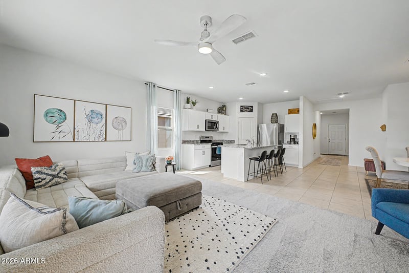 Listing details for 5631 Moody Trl, Laveen, AZ 85339 : Step into this beautifully crafted 2024 newer built home, designed with both comfort and style in mind. Featuring 3 spacious bedrooms and 2 well-appointed bathrooms, this home offers a modern layout perfect for everyday living and entertaining. The kitchen is a true centerpiece, showcasing crisp white cabinetry, elegant granite countertops, stainless steel appliances, and a large island that provides ample space for cooking, dining, and gathering. Tile flooring flows seamlessly through the kitchen, dining area, and bathrooms, combining durability with a clean, contemporary look. A generous family room creates the perfect space to relax or host guests, while the oversized primary bedroom offers a peaceful retreat complete with a large closet. The primary bathroom features a beautifully designed walk-in shower.