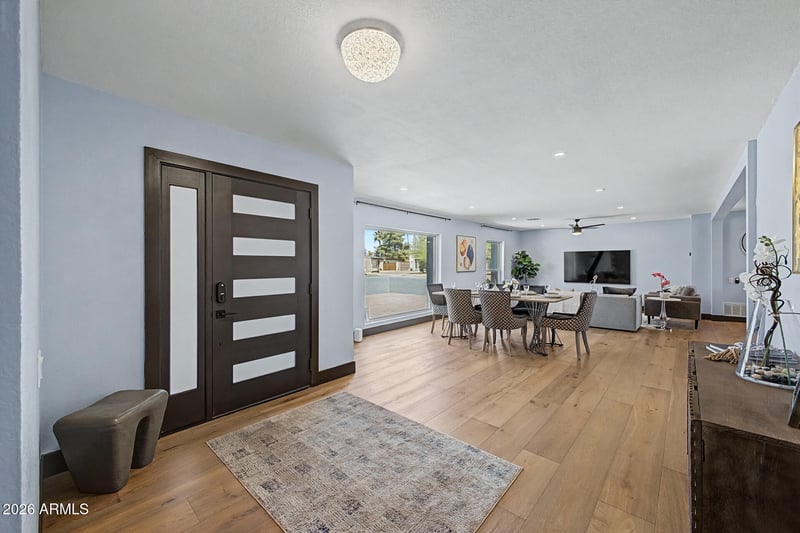 Listing details for 5633 Wethersfield Rd, Scottsdale, AZ 85254 : Welcome to your dream home in the highly sought-after 85254 zip code-situated on a spacious ~1/3 acre corner lot w/NO HOA! This beautifully remodeled home showcases thoughtful design and modern upgrades throughout. Step inside to find honey-toned wood flooring (2025), recessed lighting and a warm, designer palette. The open-concept layout seamlessly connects the living and dining spaces-perfect for everyday living and entertaining. The gourmet kitchen is a true standout w/quartz countertops, two-tone shaker cabinetry, custom tile backsplash, new appliances, a cozy breakfast nook and an oversized island with breakfast bar. Retreat to the luxurious primary suite featuring a spa-like bath with soaking tub, glass-enclosed shower, dual sinks, and a newly completed custom walk-in closet. All four bedrooms are generously-sized, while a well-appointed laundry room w/extra storage is ideally situated on the opposite wing of the home w/seamless access to the two-car garage. Enjoy Arizona living at its finest in your private backyard oasis-complete with a sparkling, resort-style heated pool, travertine hardscape, artificial turf, covered patio, towering palm trees and lush ficus trees for added privacy. This home is truly MOVE-IN READY! Conveniently located to the new upscale PV restaurants/shopping, minutes away from Kierland, Scottsdale Quarter, golf and 51 and 101 freeway.