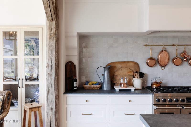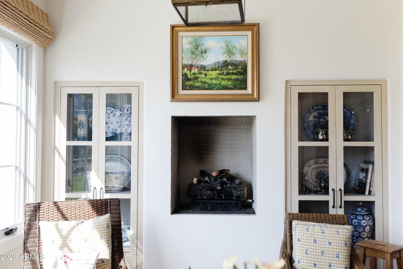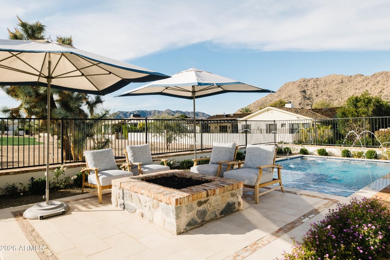 Listing details for 5635 Lincoln Dr #60, Paradise Valley, AZ 85253 : Welcome to a one-of-a-kind jewel box nestled in the gated community of Mountain Shadows East. Featuring Reclaimed beams from Quebec, Gas lanterns from New Orleans ,Chicago brick and custom cabinetry by Burdette . The layout is thoughtfully designed with a master suite, guest suite, third bedroom used as a dual office and a music room. Butlers pantry and coffee bar off open concept kitchen , a separate eating area with niche fireplace and stunning Camelback mountain views are just two examples of living well. Outside the charm continues with a welcoming front porch ,Dutch door and fountain . The deep covered back patio looking onto the pool and fire pit and open area is lush. A custom built masterpiece ,this home is a testament to craftsmanship, history and the art of fine living