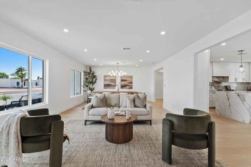 Listing details for 5638 Waltann Ln, Scottsdale, AZ 85254 : This isn't simply a home that was updated. Taken down to the studs and rebuilt to a higher standard, this residence was designed to create a home that feels as good to live in as it looks. From the moment you enter, the space opens up. A wall of oversized sliders brings in natural light, shaping the room and setting the tone for the home's modern design. At the center, the kitchen features a striking slab backsplash and waterfall island--open and well-designed, with a premium appliance package and a fully equipped butler's pantry with its own sink, dishwasher, and refrigerator, creating a true secondary workspace. The primary suite offers a different pace. Private. Calm. Thoughtfully finished. A place to start the day slowly--and end it the same way. Step outside, and the experience continues. The pool reflects the afternoon light. The limestone underfoot stays cool as the day warms. A few quiet moments on the putting green. An evening that drifts toward the fire, without needing a plan. It's not just a backyard--it's where you'll spend your time. And beneath it all is something less obvious, but just as important. The work has been done. Systems, structure, and materials have been addressed with care--including new windows and doors throughout--so the experience above it all remains effortless. Set in one of Scottsdale's most desirable neighborhoods, close to the city's best dining, shopping, and schools--yet removed enough to feel like your own space. For those who understand the difference, it's clear.