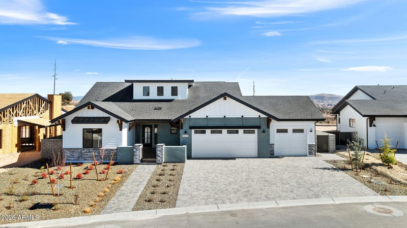 Listing details for 5649 Meridian Ct, Prescott, AZ 86305 : Move-in ready luxury home in Hidden Hills by Capstone Homes. This 2,189 sq ft contemporary farmhouse offers 3 bedrooms, 2.5 baths, and sits on a spacious quarter-acre homesite. Inside, you'll find 12' ceilings, wood flooring, driftwood shaker cabinetry, and upgraded quartzite countertops that elevate the entire living space. The open-concept design flows seamlessly, creating a bright and functional layout ideal for both everyday living and entertaining. Built with efficiency in mind, this home features spray foam insulation and solar panels, delivering top-tier energy performance and long-term savings. Additional highlights include a 3-car garage and premium construction standards you expect from a Capstone Home. Enjoy access to nearby trails and just minutes from downtown Prescott