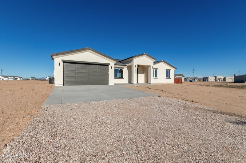 Listing details for 5714 381st Ln, Tonopah, AZ 85354 : Discover this beautifully crafted 2025-built home with no HOA, offering modern comfort and endless possibilities. The attached 2-car garage adds everyday convenience, while the light-filled living area creates an inviting space for both relaxing evenings and entertaining guests. The well-designed kitchen features essential appliances, ample counter space, and a practical layout ideal for daily living and gatherings. The primary bedroom provides a peaceful retreat, perfect for unwinding at the end of the day. Step outside to a spacious backyard with a covered patio, ready for your personal vision, whether you imagine a lush garden, play area, or a private outdoor oasis. This home blends comfort, functionality, and creative potential, an opportunity you don't want to miss.