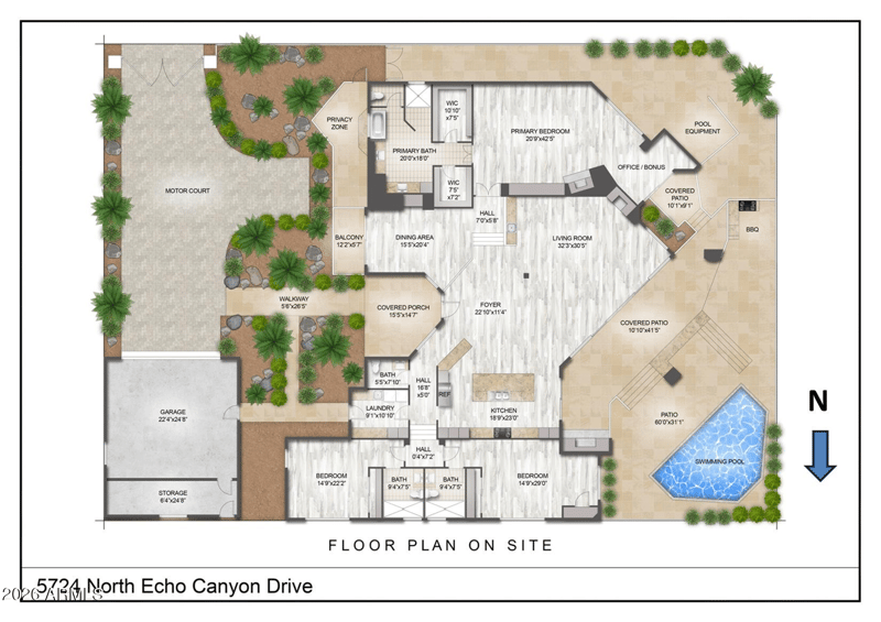 5724 North Echo Canyon Drive stands alone as the sole gated home with its own private driveway, high-profile garage and storage space, dedicated guest parking for 7 vehicles, and a generous front yard, enhancing privacy while maintaining the community's elegant aesthetic. The resort style pool and shaded patio, built-in bbq kitchen set against the open NAOS backdrop, deliver an elevated living experience framed by expansive mountain scenery. This distinguished sanctuary is a must see, offering an exceptional blend of luxury, privacy, and natural beauty.