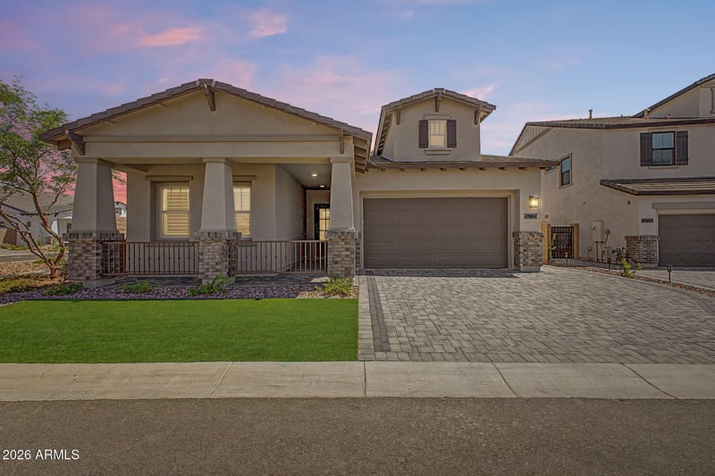 Listing details for 5735 Sayan St, Mesa, AZ 85215 : A fantastic opportunity to own this better than new & barely lived in home. Built in 2024 & located in the gated Reserve at Red Rock. You'll love the light-filled open layout, 20' wall of glass, designer finishes, quartz counter tops & shaker cabinetry. Enjoy the finishing touches w/ Hunter Douglas remote shades, plantation shutters & a custom fireplace feature wall that anchors the space w/ style. The backyard offers an extended patio, cozy firepit, Pro-grade built-in BBQ, & low maintenance landscape. The serene primary suite offers a spa-like walk-in shower, dual vanity & large walk-in custom closet. Nestled in the NE Mesa foothills near hiking, biking, Salt River, Saguaro Lake, & easy access to Loop 202. Wonderful neighborhood amenities incl. Pool, fitness center, pickleball & more!
