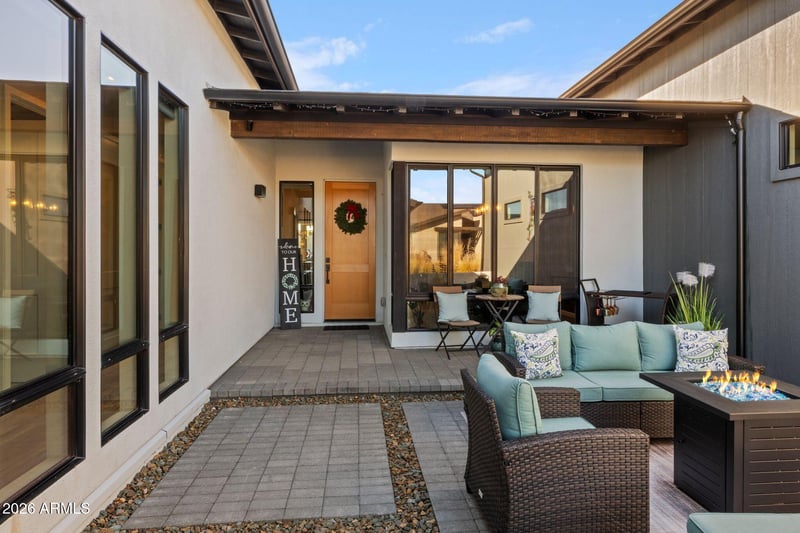 Listing details for 5745 Cannon Pl, Prescott Valley, AZ 86314 : Beautifully upgraded 4-bedroom, 2.5-bath home where contemporary living meets Prescott casual charm. From the moment you arrive, you'll appreciate the inviting front patio and conversation area--perfect for relaxing or entertaining. Inside, the home is highly upgraded and well-appointed, featuring a cozy fireplace in the living room and an open, inviting layout. The chef's kitchen is a standout with stainless steel appliances, granite countertops, and a spacious walk-in pantry. Large sliding doors open up to seamlessly blend indoor and outdoor living. The spacious primary suite offers a luxurious retreat with a generously sized bathroom, separate tub and shower, and a large walk-in closet. Guest bedrooms are also comfortably sized, providing plenty of space for family or visitors. Step outside to a backyard designed for entertaining and enjoyment. Features include a large covered patio with extended pavers, a generous area of artificial grass, and an impressive outdoor covered kitchen complete with sink, refrigerator, fire table, ceiling fans, granite bar counters, and a mounted television. And don't forget the hot tub--perfect for relaxing under the stars. Enjoy all that the Jasper community has to offer, including the J Club with its restaurant, pool, spa, courts, and inviting community gathering spaces.