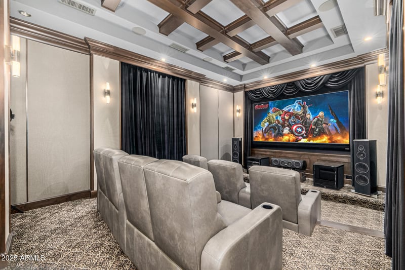 Listing details for 5745 Topaz Pl, Chandler, AZ 85249 : From the moment you step through the beautiful foyer, you'll be captivated by the oversized plank hardwood flooring and striking modern stone fireplace with open-concept living area. A dramatic home theater can deliver the ultimate cinematic experience, while the chef's kitchen is featuring a 48' gas range with pot filler, double ovens, a built-in side-by-side fridge/freezer, spacious butler's pantry for seamless prep and storage.Designed for effortless entertaining, this home offers five spacious bedrooms, 4w/private ensuite baths&walk-in closets. The thoughtful layout continues outdoors, where a resort-style backyard awaits. Enjoy a heated pool and spa, a built-in misting system, and an extraordinary outdoor kitchen complete with BBQ, flat cooktop, fridge, ice maker, sink, pizza oven. Surround sound sets the perfect ambiance for gatherings.Additional features include a fully extended driveway, electric RV gate, rain gutters, and an outdoor surround sound system. Every detail carefully curated for luxury and ease. Welcome to a home that balances elegance, innovation, and lifestyle! This is Vasaro living at its finest.
