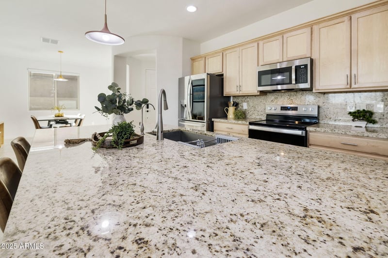 Listing details for 5823 Del Rancho --, Mesa, AZ 85212 : A MUST SEE! This popular Waltz plan is a great room plan with 2-bedroom, 2-bathroom, a den and a dining/flex room. The kitchen boasts granite counters, large island, upgraded maple recessed cabinets with brush nickel hardware, stainless steel appliances, stainless steel single-bowl sink with a goose neck faucet & pendant lighting. Additional cabinets at the key drop. The great room includes 12 ft multi-slider door. This home boasts upgraded 5 panel doors & tile throughout. The split floor plan offers privacy at the extended primary en-suite which has a raised vanity, double sinks, walk-in shower with bench, a walk-in closet & a private water closet. You'll love the double-door storage closet and separate laundry room with hanging rack & additional shelves. The Craftsman Elevation ... offers curb appeal. The backyard features a covered patio and professionally landscaped with real grass and a paver border. The home also includes an epoxy-floor garage with a service door and 2-foot extension for larger vehicles.
