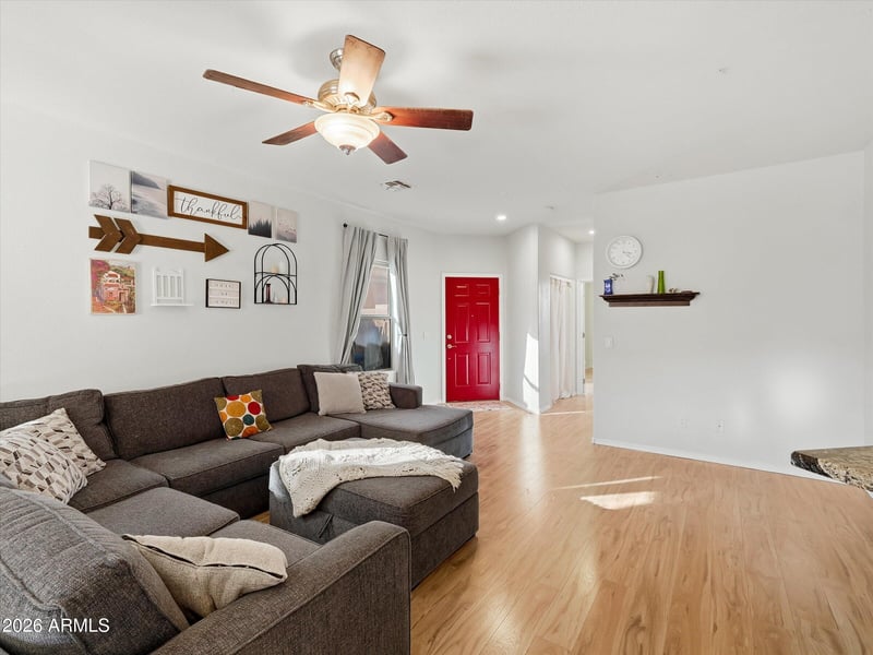 Listing details for 5833 Norland St, Mesa, AZ 85215 : Desirable NE Mesa gated community! This beautifully maintained 3 bedroom, 2 bathroom home features large master suite. Kitchen with granite slab and large island opens to the great room. The master has a bay window, full walk in closet, large vanity with sink, private toilet and full shower. Front bedroom is spacious, light and bright. Brand new Mohawk wood laminate flooring throughout. Delightful backyard provides a relaxing covered patio with bench seats, pavers and mature landscaping. New heater installed 2024 and new water heater 2025.