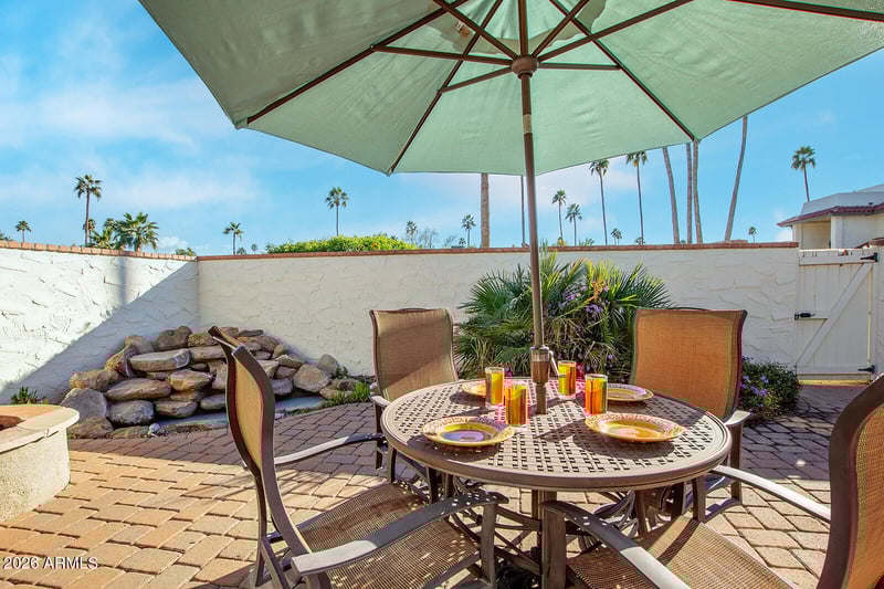 Listing details for 5834 Scottsdale Rd, Paradise Valley, AZ 85253 : Welcome to Villa Del Oro, one of Paradise Valley's gated communities, where convenience, charm, and effortless living come together beautifully. Ideally located near premier shopping, dining, and entertainment, this home is just minutes from everything including Old Town and within easy reach of some of the Valley's most scenic hiking trails. Lovingly maintained by its original owner, this gem offers a rare blend of pride of ownership and timeless appeal. The large private backyard patio is filled with sunshine and character, perfect for morning coffee or relaxed evenings outdoors. Tucked away in a quiet interior location, the home does NOT back to any roads or neighboring communities, offering exceptional privacy and tranquility. Even better, the property backs directly to the sparkling community pool and hot tub, with your own private gate providing effortless access. Enjoy the luxury of a resort-style pool just steps away, without the upkeep. With no stairs inside or out, this home is designed for easy, comfortable living in every stage of life. A truly special opportunity in an exceptional community! This is an absolute amazing price for this zip code!