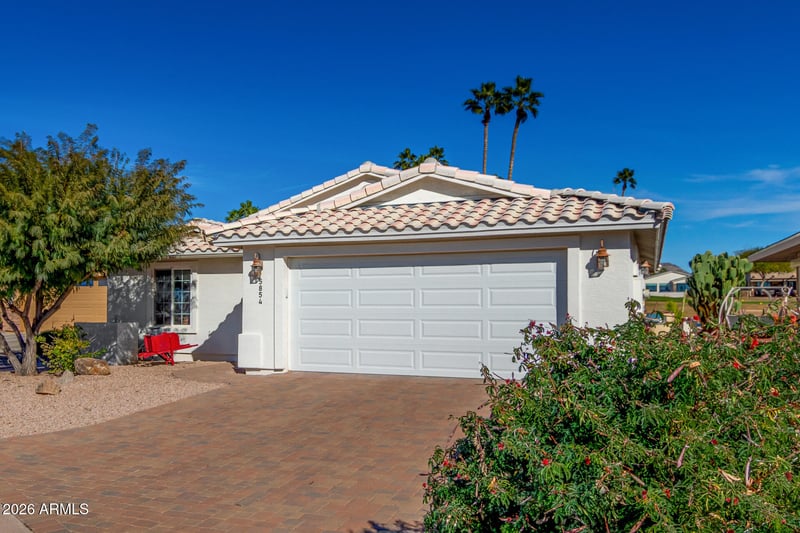 Listing details for 5854 Leland St, Mesa, AZ 85215 : Wowzer!!! You cannot beat this million dollar view! Stunning 2 bedroom + den, 2 bath home. 2 car garage (room for a golf cart too, as one of the stalls is longer than the other. Stunning, open floor plan. Stainless steel appliances in the kitchen. Large laundry room with a wash basin. Much of the furniture and furnishings are available. One of the most beautiful lots you will find in Apache Wells--- located on water front, with amazing views of 4th fairway. This is a must see home.