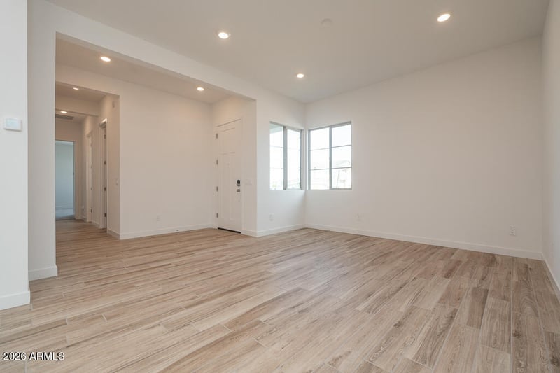 Listing details for 5857 Red Rock St, Gilbert, AZ 85298 : Beautifully designed 3-bedroom, 2-bath home offering 1,836 sq ft of stylish living space. The open kitchen features Diamond Collection Loren Maple Buckskin cabinets, quartz countertops, and stainless appliances including a gas cooktop, built-in oven/microwave, and dishwasher. The Great Room boasts a 12 ft. multi-panel sliding glass door leading to a covered patio for seamless indoor-outdoor living. Wood-look 6x36-inch plank tile flows through main areas. The primary suite includes a freestanding Breanne soaking tub and separate shower. Paver driveway and porch add curb appeal.