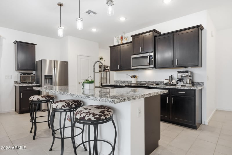 Listing details for 5902 199th Ln, Litchfield Park, AZ 85340 : Better than new and completely move-in ready in the highly desired Litchfield Park! Built in 2022, this single-story home already has all the upgrades done for you — window treatments, ceiling fans, ALL appliances included, & finished landscaping — so you can skip the extra expense and hassle. The welcoming entry leads into a bright open layout with a stylish eat-in kitchen featuring a large island, walk-in pantry, SS appliances, & seamless flow into the living space. The split floor plan offers 3 bedrooms, including a private primary suite with dual sinks, walk-in shower, & a spacious walk-in closet. Enjoy beautiful mountain views and spectacular sunsets. Located near parks and within the highly rated Litchfield Park School District. Don't miss out on this turn-key home!