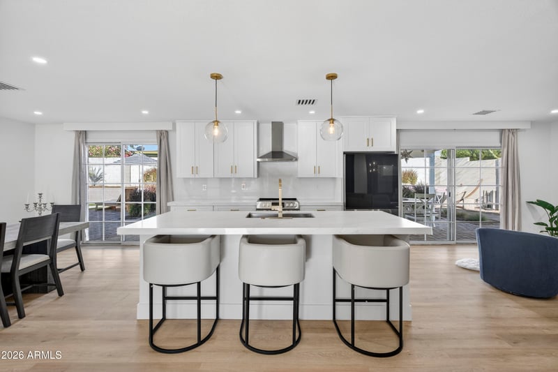 Listing details for 5910 Hillery Dr, Scottsdale, AZ 85254 : Fully reimagined and light-filled, this 4-bedroom, 2.5-bath Scottsdale home offers open, flowing living just minutes from Kierland. Highlights include a stunning custom kitchen, new flooring throughout, added laundry room, designer wallpaper, secret doors, and a brand-new hotel-inspired backyard with pool and Zen retreat. No HOA. Turnkey. Exceptional. Step into a rare, fully reimagined Scottsdale residence where light-filled design, thoughtful craftsmanship, and location come together seamlessly. Just minutes from Kierland Commons and Paradise Valley Mall, this 4-bedroom, 2.5-bath home has been completely remodeled from top to bottom, delivering modern elegance with an effortless, open flow.