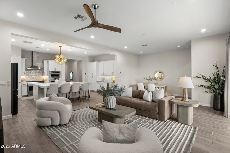 Listing details for 5954 Cat Balue Dr, Phoenix, AZ 85054 : Welcome to Talinn at Desert Ridge — where modern luxury, privacy, and prime location come together in one of the most sought-after gated communities in North Phoenix. Perfectly positioned on a premium corner lot with no neighbors behind, this beautifully designed 4-bedroom, 3-bath home offers the kind of space, flow, and finishes today's buyers rarely find all in one place. From the moment you step inside, soaring ceilings and natural light create an open, airy feel, leading you into a stunning great room that was made for both effortless entertaining and everyday living. At the heart of the home, the chef's kitchen truly shines — complete with an oversized island, sleek gas range, abundant storage, and elevated finishes that feel both sophisticated and functional. Whether hosting friends or enjoying a quiet night in, this space delivers. The thoughtfully designed split floor plan provides ideal separation and privacy, highlighted by a serene primary retreat with a spa-style bath and custom walk-in closet. A private ensuite bedroom offers flexibility for guests, multigenerational living, or the perfect home office. Beyond the home, residents enjoy resort-style amenities including a heated pool and spa, fitness center, and beautifully maintained green spaces  all just minutes from the best dining, shopping, and entertainment at Desert Ridge Marketplace, City North, and quick freeway access throughout Phoenix. Opportunities like this  combining a premier lot, modern design, and unbeatable convenience  don't come around often. If you're looking for one of the very best homes in Talinn, this is it.