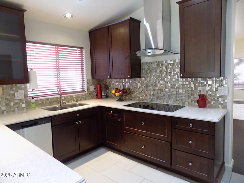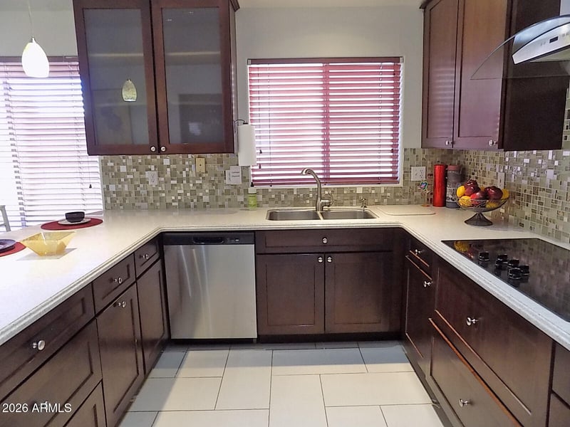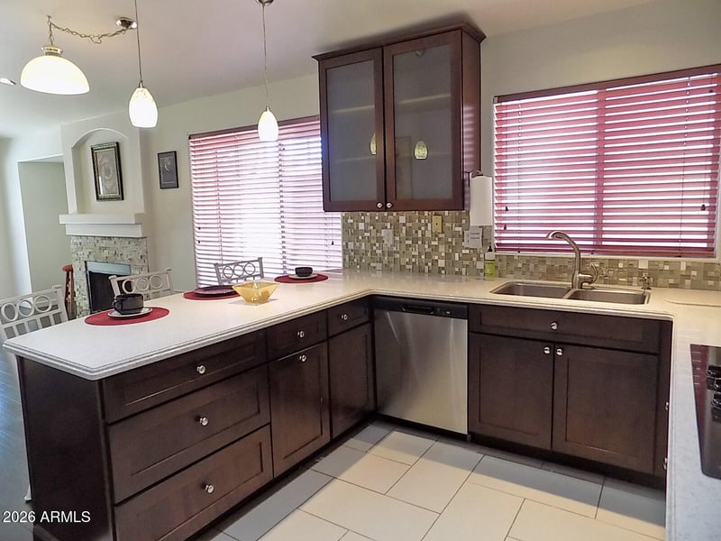 Listing details for 5961 Saragosa Ct, Chandler, AZ 85226 : Gorgeous 3BR, 2BA, 1627SF N/S facing home on cul de sac lot with sparkling pool. Major maintenance done with New roof January 2026, full interior paint, Stove top & dishwasher Dec 2025, HVAC & Water Heater May 2021, The cook will love the updated kitchen-new cabinets with quiet close drawers, Corian counters, built in micro, tons of storage & huge pantry + breakfast bar & eat in kitchen. Kitchen open to family room w/cozy fireplace. Flexible formal living & dining could be perfect game room. Upgraded wood flooring in living & family room. Large master BR with walk in closet. Master bath has double sinks. Inside laundry-washer/dryer included. Two car garage with opener & storage cabinets. Across from green area. Super location near Nozomi park, Intel, shopping & 202 Freeway. Welcome home!