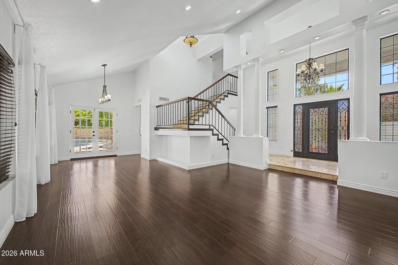 Listing details for 6020 Marconi Ave, Scottsdale, AZ 85254 : Discover the epitome of elegance and entertainment in this 4-bedroom, 3-bath family home located in the MAGIC 85254 zip code with no HOA. As you step through the custom wrought iron front door, you'll be welcomed by a grand entryway adorned with tasteful tile and hardwood floors in all the right places. The step-down formal living and dining areas, featuring soaring ceilings, provide the perfect backdrop for gatherings. The spacious, open-concept kitchen, dining, and family room beckon you to gather around the elegant stacked stone fireplace and hearth. The eat-in kitchen boasts upgraded granite counters, custom cabinets, a stylish backsplash, stainless steel appliances, and a convenient breakfast bar. Hit the MORE button to see more features in this amazing home! On the main floor, you'll find a powder room and a well-appointed laundry area for added convenience. The secluded first-floor master suite offers privacy and luxury, featuring high-end marble finishes in the full en-suite bathroom, a spacious walk-in closet, vaulted ceilings, and private access to the backyard.