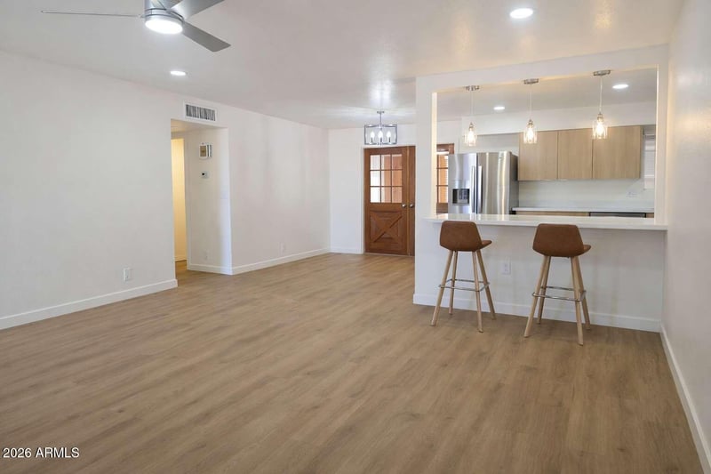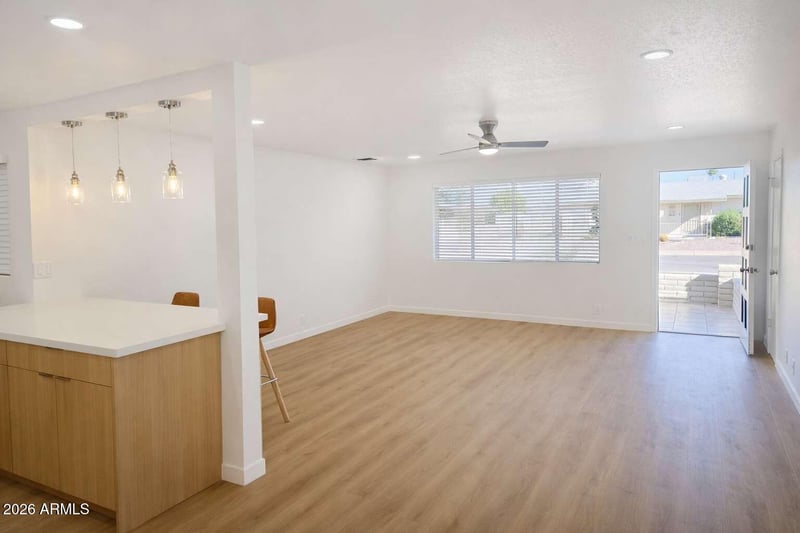 Listing details for 6025 Boise St, Mesa, AZ 85205 : Welcome to this beautifully full remodeled single-level home in a quiet, established Mesa neighborhood. Offering 1,798 square feet of living space, this 2-bedroom, 2-bathroom residence includes a den with fireplace, dedicated laundry room, and an Arizona room - perfect for a home office, gym, or additional living space. The home features, brand new roof, new water heater, new cabinets, new counter tops, new flooring, new fixtures, modern finishes throughout, an open and functional layout, and abundant natural light. The kitchen and bathrooms have been tastefully updated, while the low-maintenance desert landscaping and covered outdoor areas make this ideal for Arizona living. Conveniently located near shopping, dining, and freeway access, this move-in ready property is a must-see.