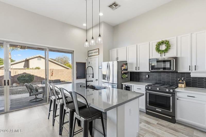 Listing details for 6036 Roland St, Mesa, AZ 85215 : Designed to impress! This beautifully updated 3-bedroom, 2-bath home offers 1,793 sq ft of stylish living space on a desirable corner lot. Enjoy peace of mind with a brand-new HVAC system (2025) including air handler and furnace, plus fresh interior paint (2022). The living area shines with a custom built-in entertainment center and cozy fireplace (2025), while laminate flooring throughout adds a clean, modern lookâno carpet anywhere. Functional upgrades include new cabinetry in the hall and laundry room, and Samsung washer and dryer are included. Step outside to a backyard made for fun and relaxation! A Murphy bed can convey, offering added flexibility for guests or a home office. All other furniture can be purchased, and the swing set is available for purchase. Residents also enjoy access to a private community park. Perfectly located for outdoor lovers - just minutes from Red Mountain Ranch Country Club, Las Sendas Golf Club, and Usery Mountain Regional Park - this home blends comfort, upgrades, and an unbeatable location. A must-see!