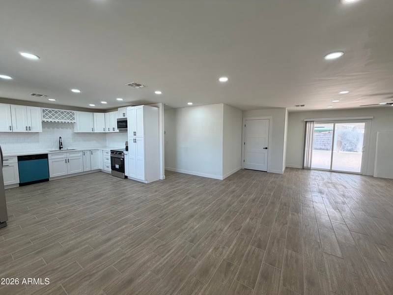 Listing details for 6063 Earll Dr, Phoenix, AZ 85033 : Fully remodeled and move-in ready! This spacious 5-bedroom, 2-bath home offers modern upgrades throughout, including beautiful tile flooring and a brand-new kitchen with stylish finishes and updated cabinetry. The open layout provides plenty of room for comfortable living and entertaining. Step outside to enjoy your private backyard oasis featuring a sparkling pool. Plus, a detached studio in the back includes its own kitchen and bathroom -- perfect for guests, rental income, or multigenerational living. A must-see property with incredible versatility and value!