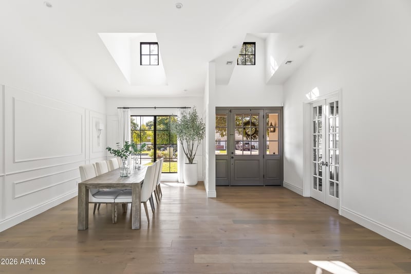 Listing details for 6114 Calle Del Paisano --, Scottsdale, AZ 85251 : Situated on one of the most desirable streets in Arcadia Proper, this charming ranch seamlessly blends timeless architecture with elevated modern living. Lush front grass, mature trees, and strong curb appeal welcome you into a thoughtfully designed home filled with natural light. Inside, high ceilings and French styled windows create a bright, airy feel throughout. Wide-plank white oak flooring flows through the open-concept living, dining, and kitchen spaces. A wall of sliding glass doors connects the interior to the backyard, while the living room is anchored by a gas fireplace with custom built-in shelving and a wet bar featuring a built-in wine refrigerator—perfect for entertaining. The chef's kitchen showcases high-end appliances, a gas range, oversized island with seating, custom floating shelving framed by backsplash, breakfast nook, and a spacious walk-in pantry. The split floor plan offers a private primary suite retreat with a gas fireplace, direct backyard access, dual vanities, a marble-surround soaking tub, oversized walk-in shower, and a custom walk-in closet. Three additional bedrooms are all ensuite, providing comfort and privacy for family or guests. A two-car garage completes the interior. The backyard is a private oasis featuring a sparkling pool with expanded pool deck, covered patio, generous grassy yard, and tall hedges for exceptional privacyideal for year-round Arizona living and entertaining. Prime location just minutes from Arcadia's favorite restaurants, boutique shopping, top golf courses, luxury resorts, and all that central Phoenix has to offer.