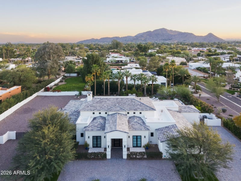 Listing details for 6129 Turquoise Ave, Paradise Valley, AZ 85253 : Exquisite single-level soft contemporary residence featuring soaring ceilings and an airy, open-concept design with stunning backyard views upon entry. The chef's kitchen is equipped with top-of-the-line Thermador appliances, including double ovens, two dishwashers, and a wine refrigerator. A refined split four-bedroom floor plan offers exceptional privacy with a guest wing, private sitting area, and a dedicated office ideal for remote work. The expansive primary suite serves as a serene retreat. A new Control4 smart home system provides seamless control of lighting, audio, and climate. Enjoy a resort-style backyard with mature palm trees, pool, Jacuzzi, waterfall, firepit, misting system, RV gate, and ample space for a future guest house. Experience elevated Paradise Valley living.