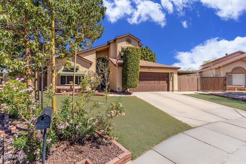 Listing details for 6131 Crocus Dr, Glendale, AZ 85306 : Welcome to one of the most beautifully maintained homes in the neighborhood located on a Cul de Sac and NO HOA! This 3-bedroom, 3 bath home offers a comfortable 2148 Sq Ft of living space with vaulted ceilings and special touches throughout, The large kitchen features granite countertops, SS appliances, Stylish two-tone cabinetry with crisp white uppers and rich espresso lowers. Downstairs bathroom has walk in shower, family room living room and formal dining area. The upstairs master suite is generously sized and offers a large walk-in closet, custom tiled walk-in shower, soaking tub and dual sinks. Two additional bedrooms upstairs full bathroom and guest bedroom walk in closet. Mature shade trees and a private backyard oasis create a retreat in the Arizona desert. Step outside to enjoy a sparkling pool with waterfall features, a built in BBG, outdoor fireplace, and mature landscaping designed for both relaxation and entertaining. RV gate with covered and paved parking space, large lot with grassy play area and lots of shade trees. Plenty of storage space, outside workspace and more! Close to walking paths, freeways and many eateries and shopping.