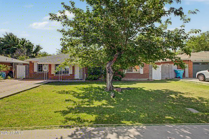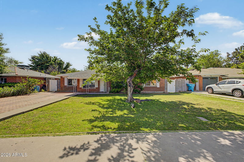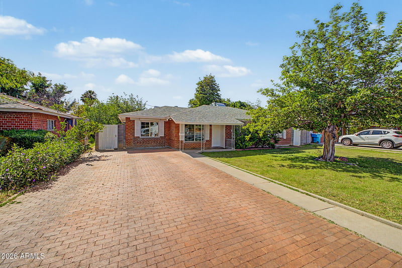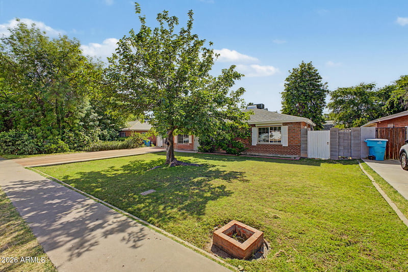 Listing details for 6138 15th Ave, Phoenix, AZ 85015 : Location, location, location! Lovely brick home with no HOA close to downtown for all the events. You're greeted by a manicured lawn and a tasteful paver driveway. Inside, you'll find an inviting living room with a soothing palette, recessed lighting, and durable tile flooring. The gourmet kitchen has granite counters, custom wood cabinetry with crown molding, a tile backsplash, and sleek stainless-steel appliances. All bedrooms are cozy and well-sized, boasting ceiling fans, ample closet space, and a private retreat for a good night's sleep. You'll also find a Jack & Jill bathroom for added comfort. Imagine enchanting evenings in the charming backyard, complete with a covered patio, lush natural turf, a large barn shed for additional storage, and mature trees that provide natural shade.