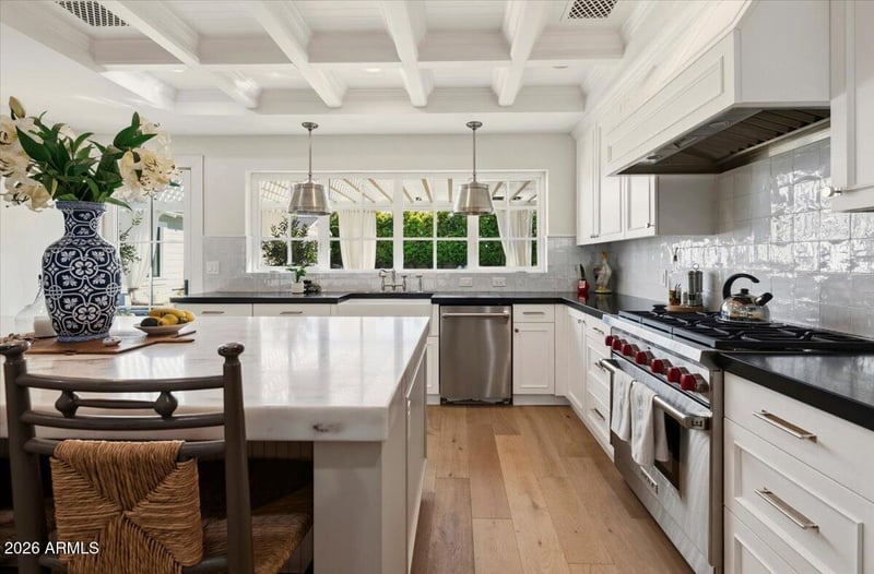 Listing details for 6141 Calle Camelia --, Scottsdale, AZ 85251 : Welcome to 6141 E Calle Camelia--an exceptional Modern Coastal retreat perfectly positioned on a private half-acre lot with breathtaking Camelback Mountain views. Newly remodeled and completed in 2026, this thoughtfully designed estate blends timeless charm with elevated, resort-style living. The property features a 3,845 sq ft main residence plus a 590 sq ft guest house, offering a total of 6 bedrooms and 6.5 bathrooms, with all bedrooms ensuite--ideal for both family living and hosting guests with ease. From the moment you arrive, the home's incredible curb appeal and professionally landscaped grounds set the tone. Inside, vaulted ceilings and wide-plank wood flooring create a bright, airy ambiance, while expansive living spaces seamlessly connect indoors to out. At the heart of the home, the chef's kitchen is designed for both everyday living and entertaining, complete with a large island, abundant storage, and picturesque views overlooking the backyard oasis. The primary suite is a true retreat, featuring a spacious sitting area, direct access to the backyard, and an impressive custom closet. Step outside to experience the ultimate Arcadia lifestyle--an incredible backyard designed for gathering and relaxation. Enjoy the sparkling pool, built-in BBQ, outdoor dining areas, and a cozy outdoor fireplace, all surrounded by lush landscaping and plenty of space to roam. Additional features include an attached 2-car garage plus a detached 1-car garage, all located on a quiet, family-friendly street within the highly sought-after Hopi School District. This is more than a home--it's a lifestyle.