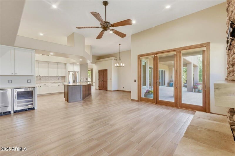 Listing details for 6218 Morning Vista Ln, Cave Creek, AZ 85331 : Beautifully remodeled modern luxury home. Over an acre, No-HOA and low taxes. Features soaring ceilings, wood-look tile, a showstopper kitchen with stainless steel appliances, granite counters, roll-outs, and an island with seating. Enjoy a cozy wood-burning fireplace, a luxurious primary suite with patio access, jetted tub, dual vanities, and walk-in closet. Junior suite provides pool access, while the versatile office can serve as fourth bedroom. The resort-style backyard includes a covered patio, built-in BBQ, fire pit, diving pool, turf, and mountain views. Upgrades: 2024 Trane HVAC, Marvin windows, Andersen doors, 2023 roof coating. Room for horses, RV/toys, gardens, or a guest house. County Island living near hiking, dining, and shopping. Years of joy await you what a special home