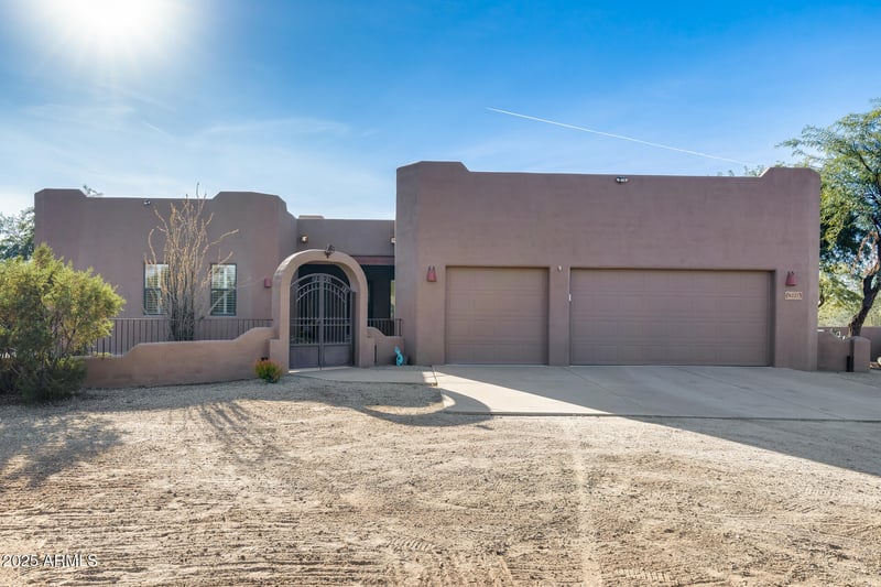 Listing details for 6227 Windstone Trl, Cave Creek, AZ 85331 : Ultimate Backyard Oasis! The resort-style backyard features a new sparkling pool with a sun deck, in-ground hot tub, expansive tiled covered patio with ceiling fans, huge built-in outdoor kitchen with attached BBQ & counter space, separate outdoor fireplace & turf. A rooftop balcony accessed by a spiral staircase provides fantastic views, while a large shed offers convenient storage for toys or tools. Step inside to the perfect blend of comfort, space & entertaining potential with soaring ceilings & a bright, open layout. The spacious kitchen boasts stainless steel appliances, granite counters, breakfast bar, a pantry & plentiful cabinetry, flowing into the formal dining area & the main living room with a unique & central gas fireplace. The large primary suite offers a retreat with a soaking tub, walk-in shower, dual vanities, oversized walk-in closet & separate backyard access. Other bedrooms are generously sized & one bath offers dual-entry & separate vanities, perfect for guests or family. Additional highlights include a 3 car AC insulated garage, indoor laundry room with utility sink, new 2024 septic, new iron & glass front door, & no HOA. Located near shopping, dining, grocery stores & more, this home is the ultimate setting for entertaining, relaxing & fully enjoying the Arizona lifestyle.