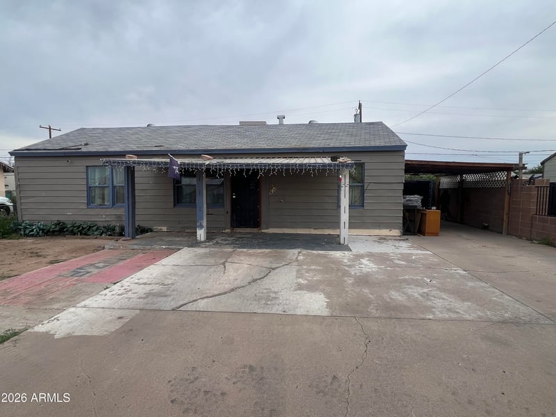 Listing details for 623 Wier Ave, Phoenix, AZ 85041 : Investor Special! This 3-bedroom, 1-bath home offers 882 sq ft of living space on a 5,998 sq ft lot with no HOA—a rare find with plenty of potential. The property is in need of significant repairs, making it an ideal opportunity for investors, flippers, or buyers ready to create value through renovation. The spacious lot provides room to reimagine the home, expand, or enhance outdoor living. Whether you're looking for your next project or a value-add opportunity, this property is full of possibilities.