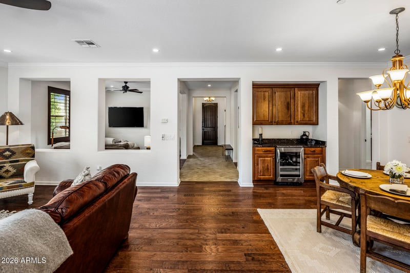 Listing details for 6231 Mark Way #43, Cave Creek, AZ 85331 : Upscale desert retreat in the heart of Cave Creek! Nestled on the north slope of Black Mountain in the sought-after Rancho Madera enclave, this beautifully upgraded 2 bed + den home offers open-concept living with split ensuite bedrooms. This property is loaded with upgrades including rich wood flooring, herringbone tile, and plantation shutters. The kitchen features custom cabinetry, stainless appliances, a built-in wine bar and wine refrigerator. Enjoy the exclusive community clubhouse, fitness center, heated pool and spa. Entertain guests with dinner on your private covered patio or stroll to one of Cave Creek's renowned restaurants. This lovely home is just minutes from hiking, golf, shopping, dining, and galleries in downtown Cave Creek.